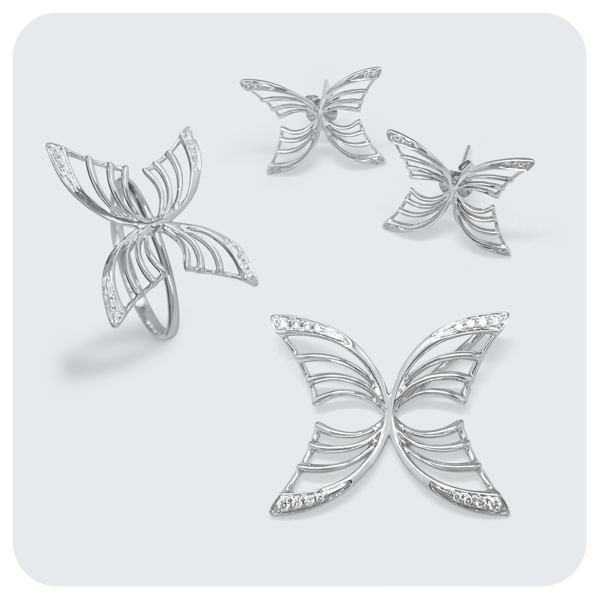 嬌艷「小撇步」蝶鑽系列,突顯優雅蝴蝶美態配上閃爍的精鑽,耀眼的閃爍帶年金蝶活力。無論是買給自己,又或是送給另一半,都一樣令人心動。套裝包括: